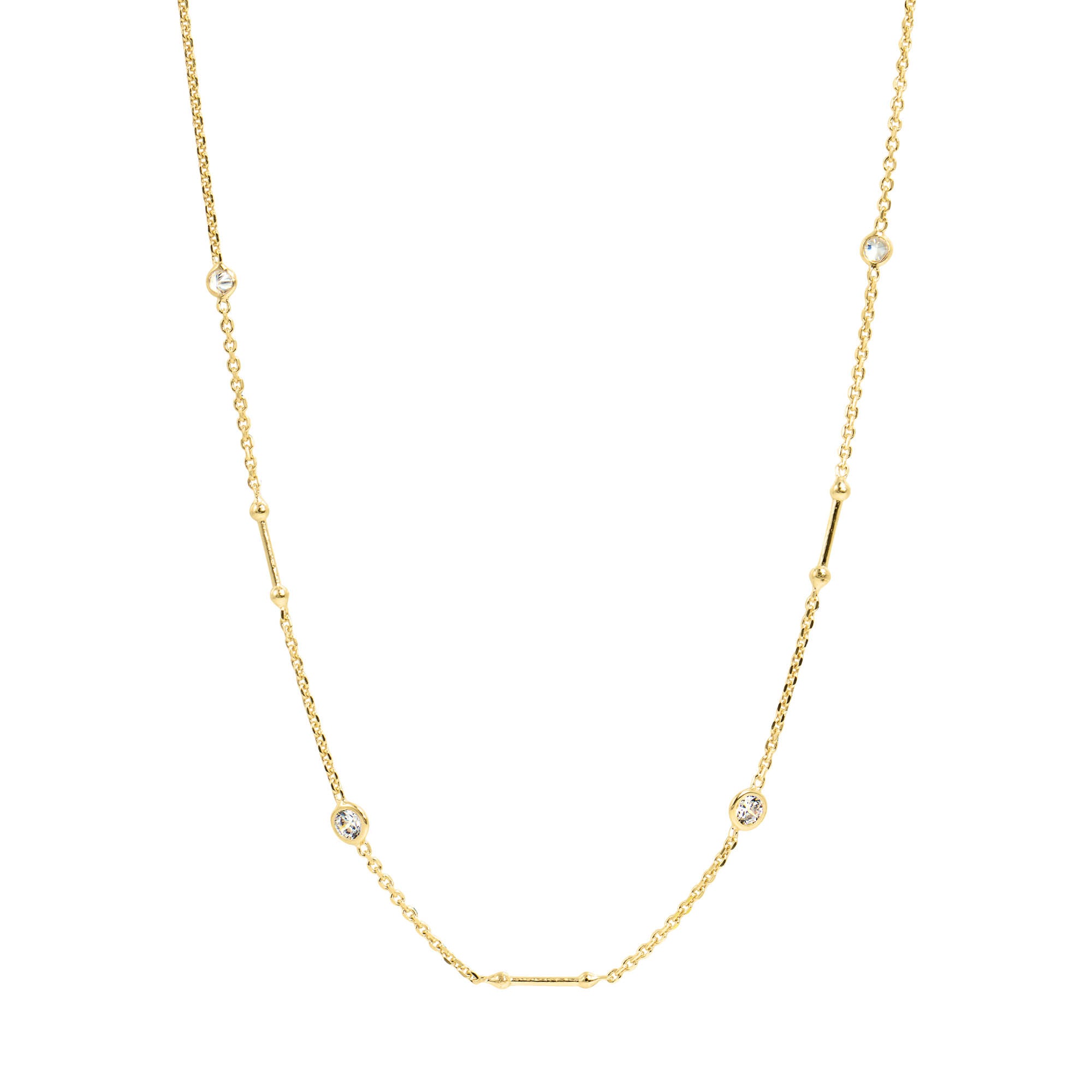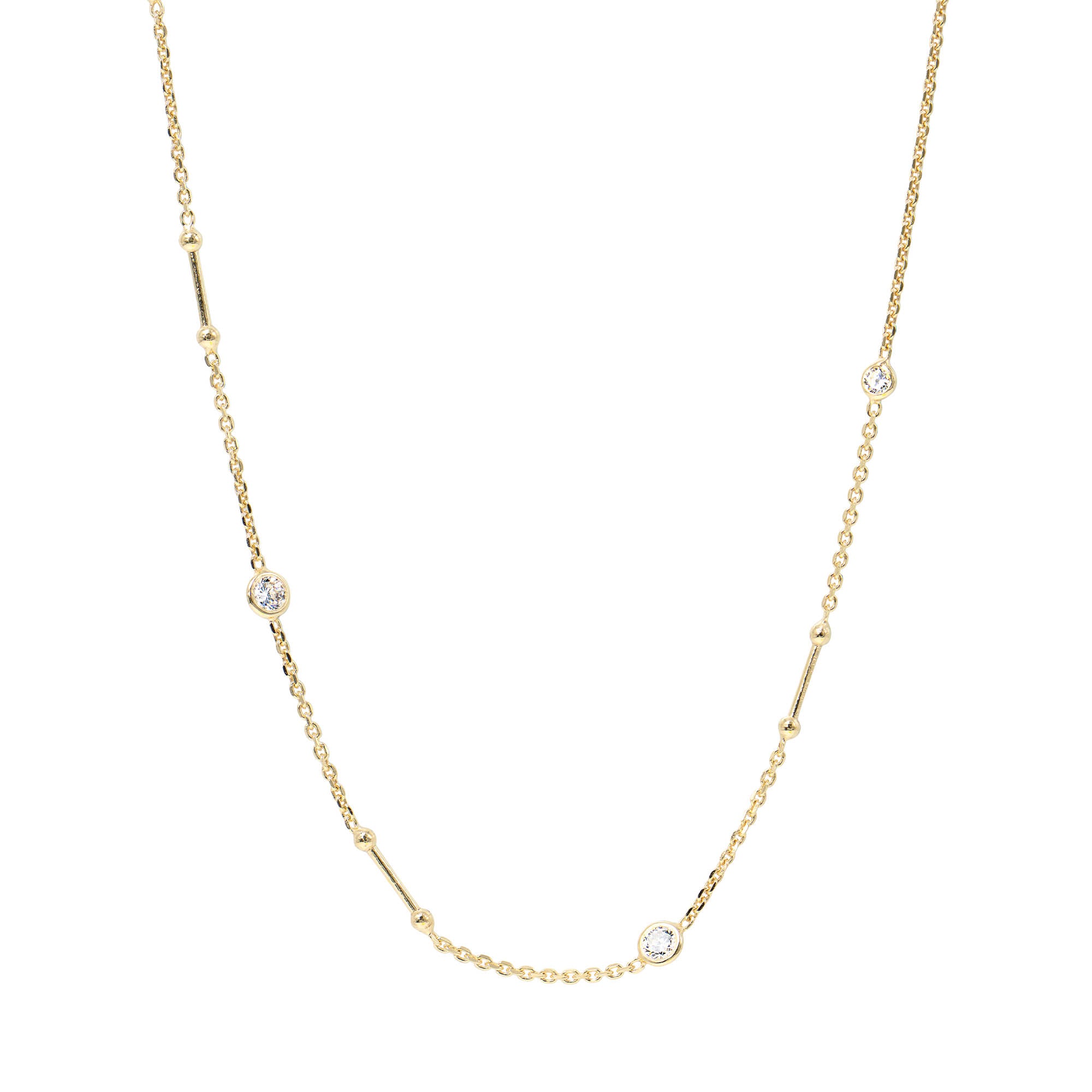 Ein unwiderstehliches Schmuckstück: Die Halskette aus 925er Sterling Silber ist mit goldenen Stäbchen geschmückt, die mit funkelnden Zirkonia geschmückt sind. Ein Hauch von Farbe und Eleganz für jeden Hals. Perfekt für jede Gelegenheit!