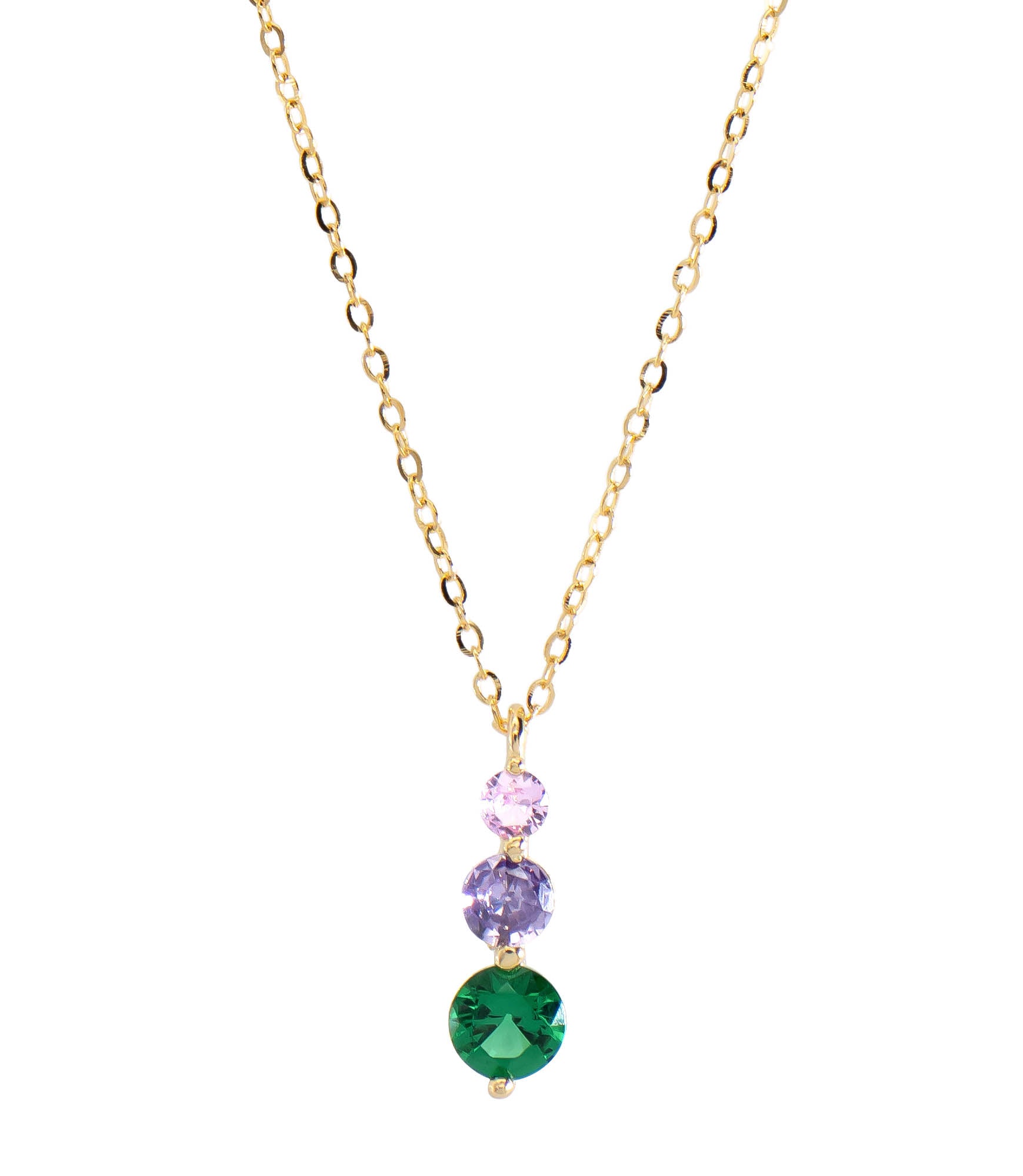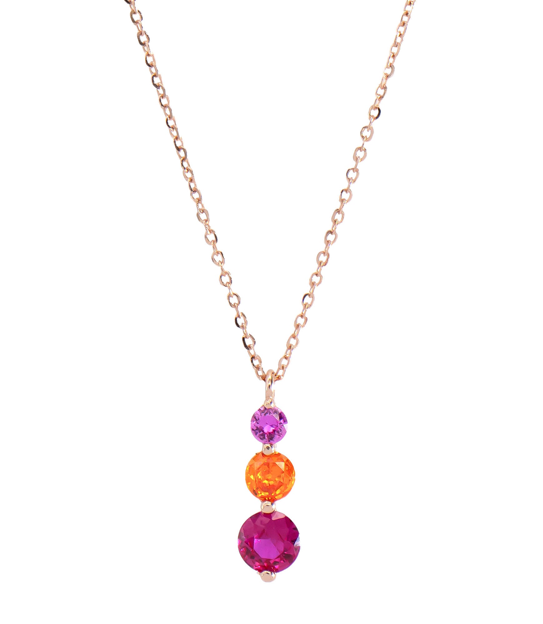 Fühl dich zart und glamourös mit unserer 925 Sterling Silber rosé vergoldeten Halskette, verziert mit drei funkelnden Zirkonia Steinen in unterschiedlichen Größen, die senkrecht angeordnet sind. Ein funkelnder Hingucker für jeden Anlass.